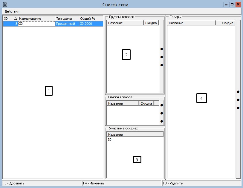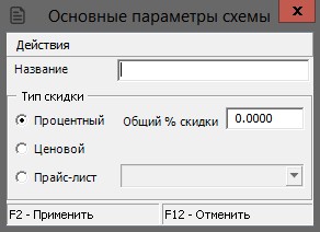 Чтобы добавить новую схему, откройте окно "Список скидок".