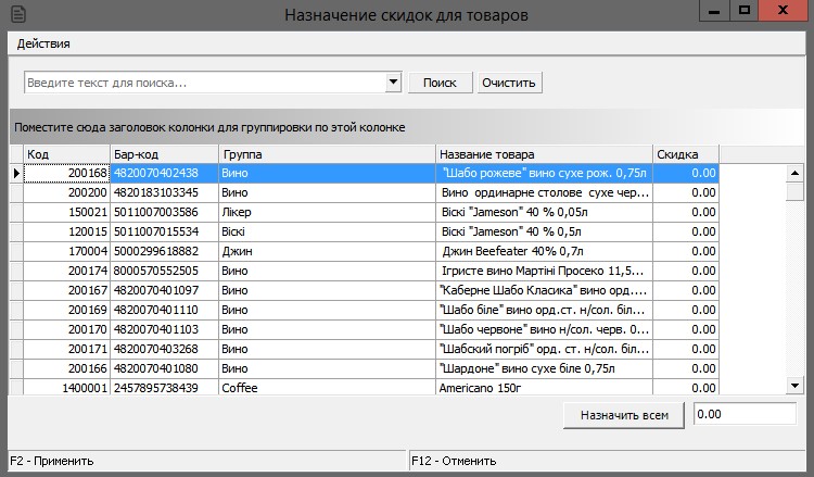 6. Чтобы задать один процент для всех групп товаров, введите в поле "Назначить всем" процент скидки и нажмите на кнопку "Назначить всем". Всем группам будет назначен указанный процент скидки.