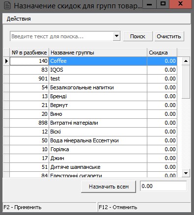 5. В этом окне можно задать процент скидки, который будет начислен для групп товаров.