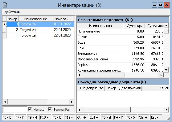 Пункт подменю "Инвентаризация" из меню "Документы" вызывает окно, которое предназначено для выполнения следующих операций: