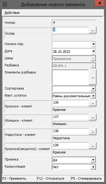В результате откроется окно, предназначенное для задания критериев формирования новой инвентаризации. Пример этого окна показан ниже