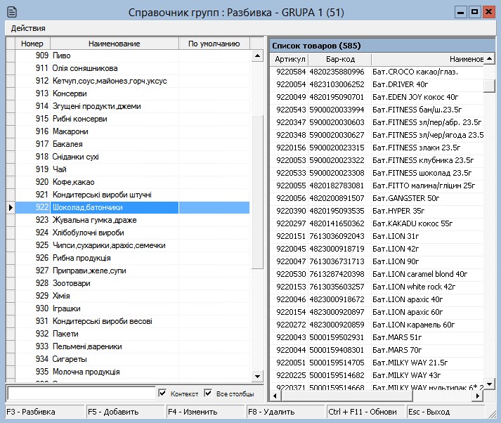 В этом окне следует выбрать нужную группу товаров, а затем