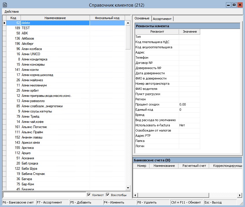 В окне справочника можно выполнить следующие операции:
