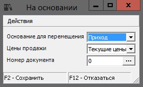 В результате откроется окно, для изменения основания для перемещения товара. Пример этого окна показан ниже