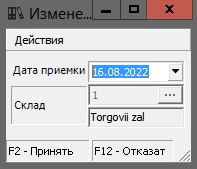 В результате откроется окно, предназначенное для изменения даты приемки товара. Пример этого окна показан ниже