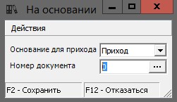 В результате откроется окно, для изменения основания например для перемещения товара. Пример этого окна показан ниже